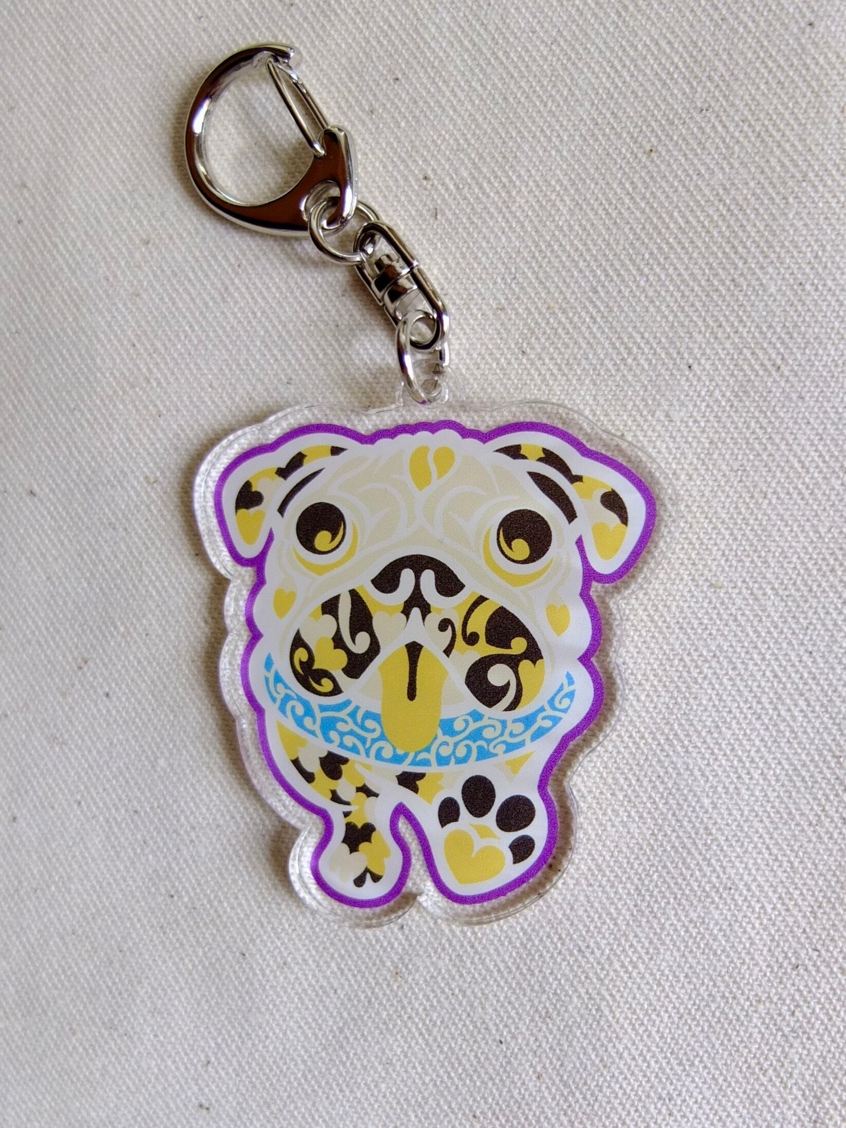 透明感のあるアクリル素材が、文太の魅力を引き立てています。軽量で持ち運びも楽々、飾りとしても映えますので、コレクションとしてもオススメです。心温まるパグの表情に、思わず微笑んでしまうことでしょう。