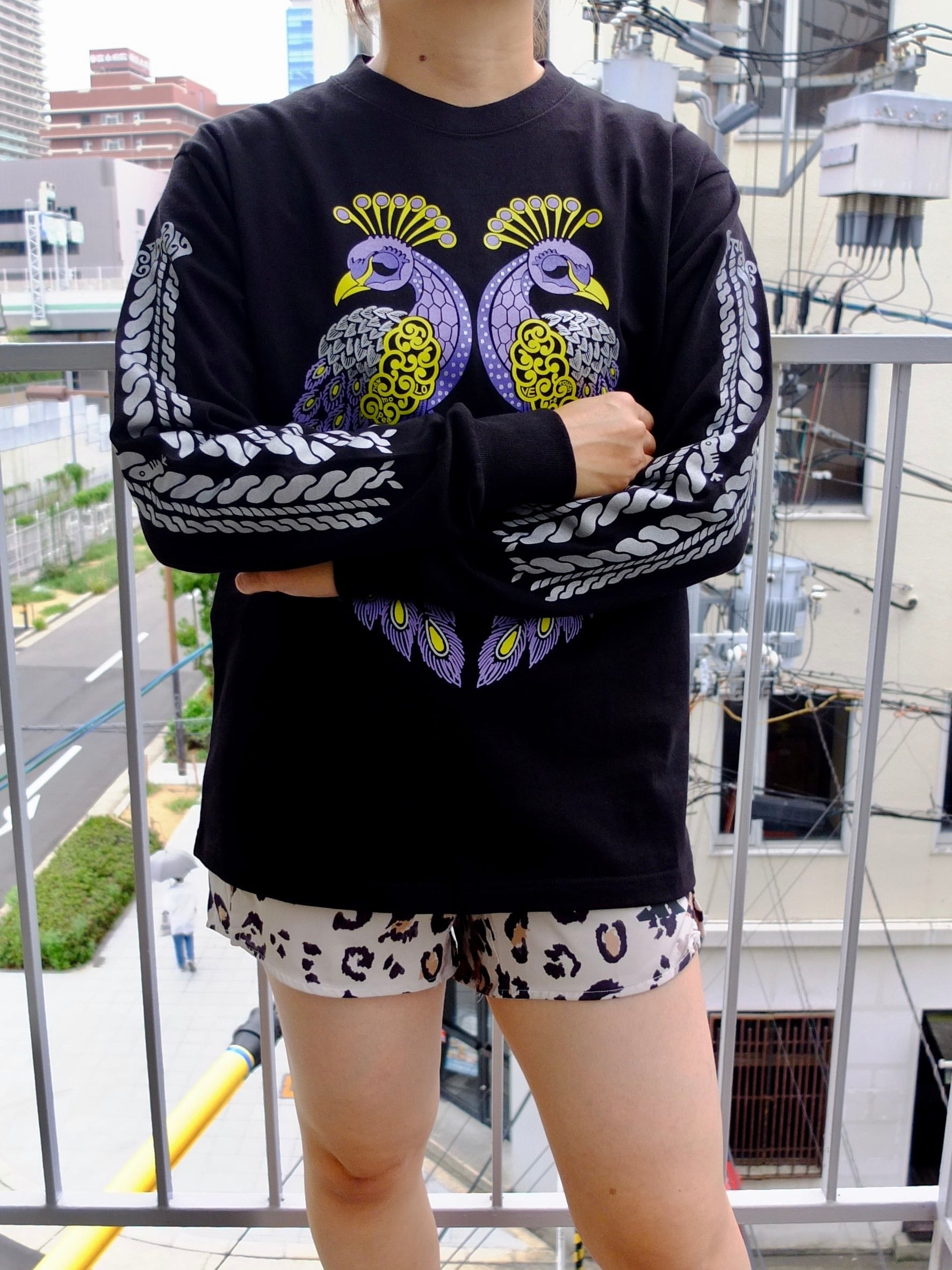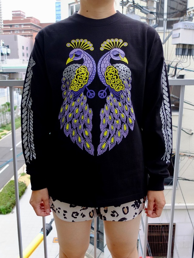 くじゃくのピーコの長袖Tシャツ C/#ナチュラルブラック