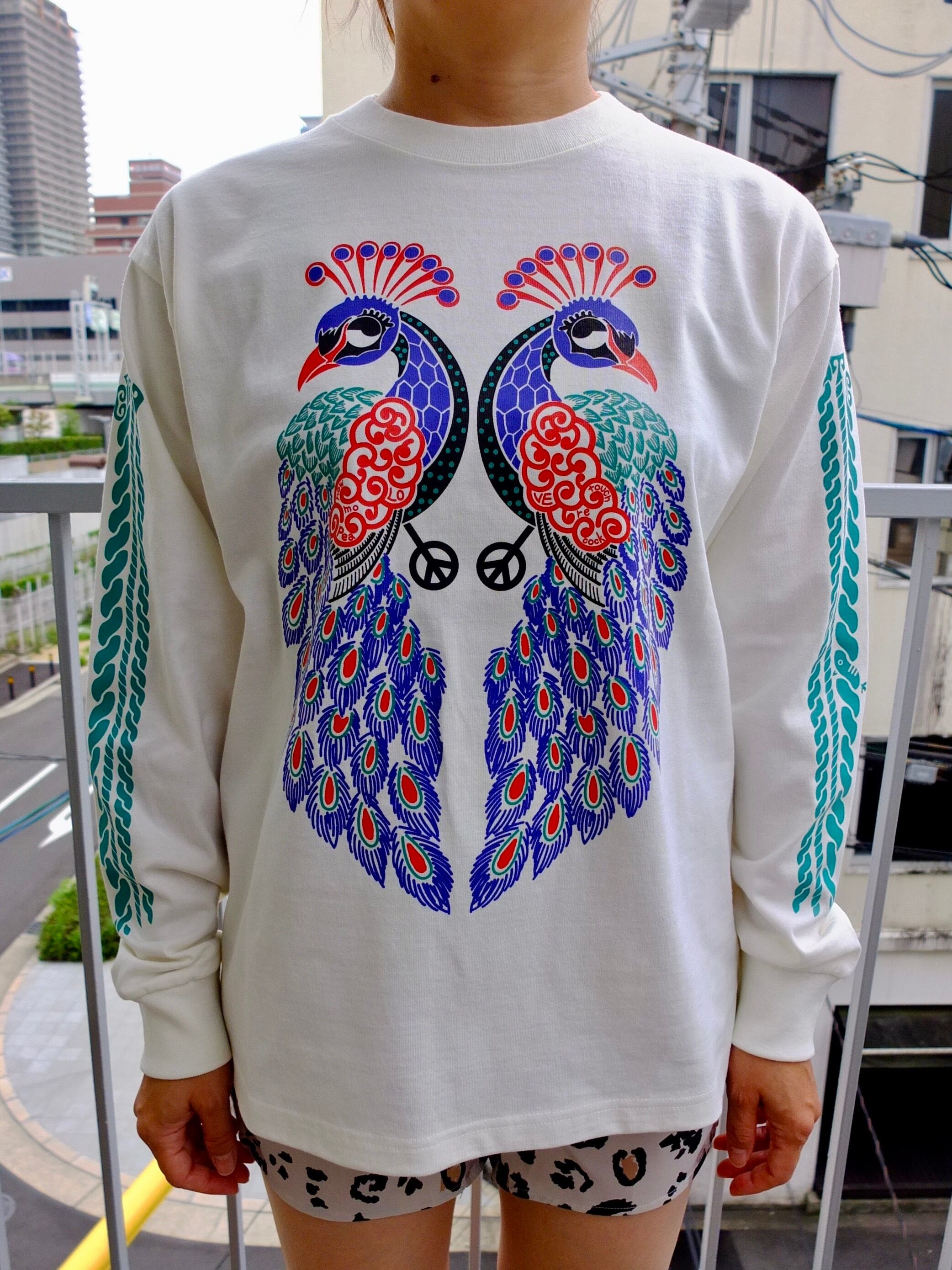 くじゃくのピーコの長袖Tシャツ C/#ナチュラルホワイト