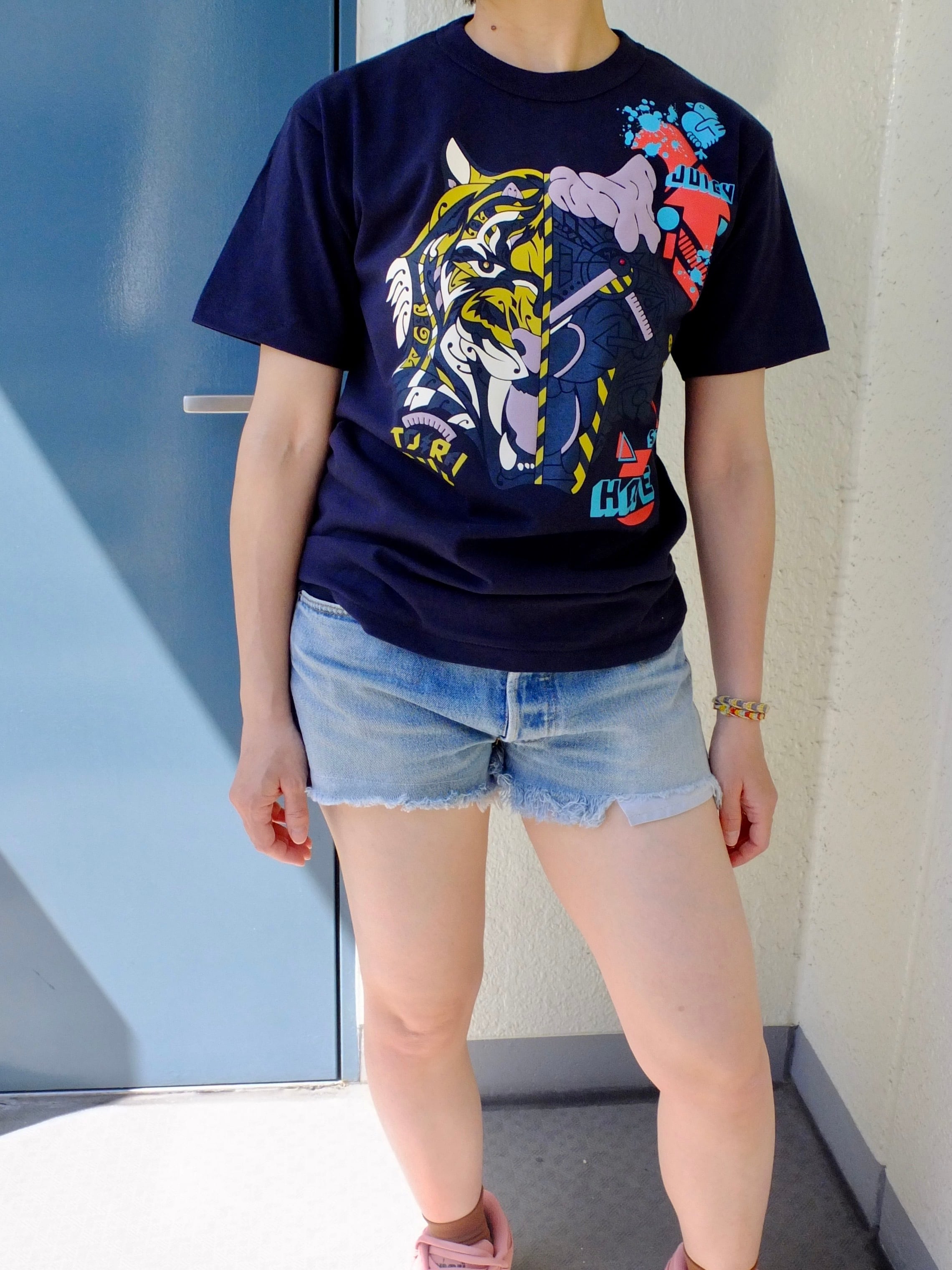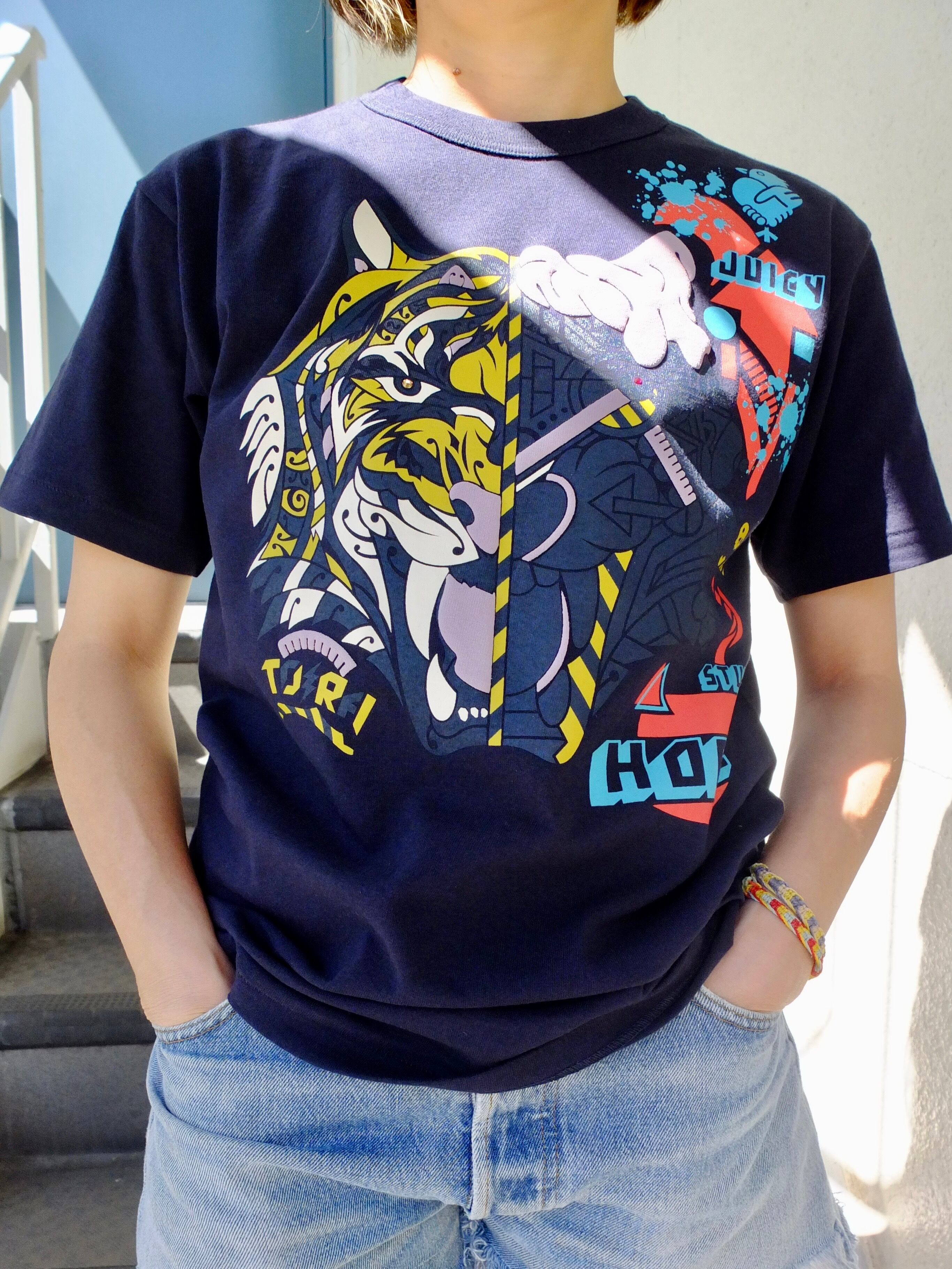 虎のタイガーのTシャツ:2025年阪神タイガース優勝ありがとう! C/#ブルペンに感謝ネイビー