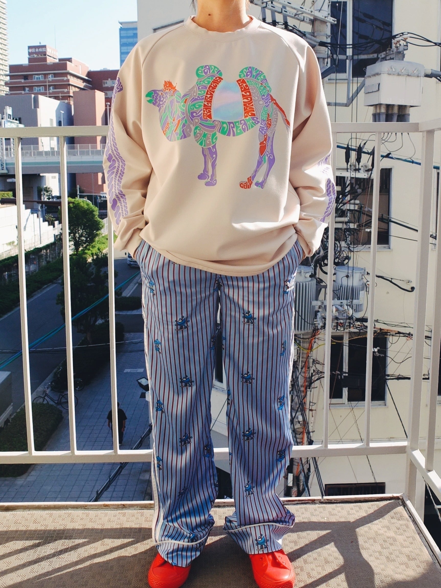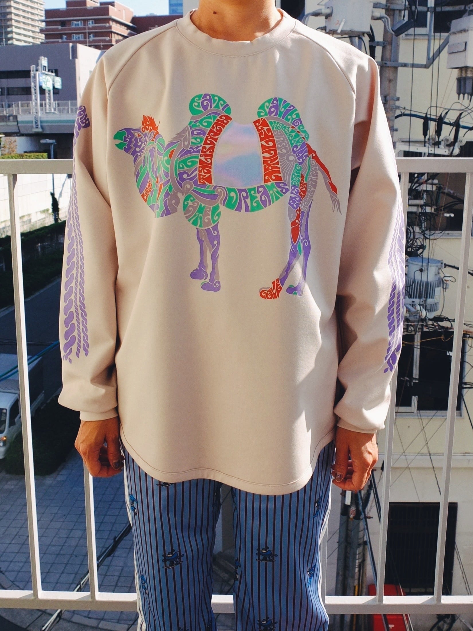 らくだ、楽か?楽じゃね~の長袖Tシャツ C/#ベージュうっすらピンク