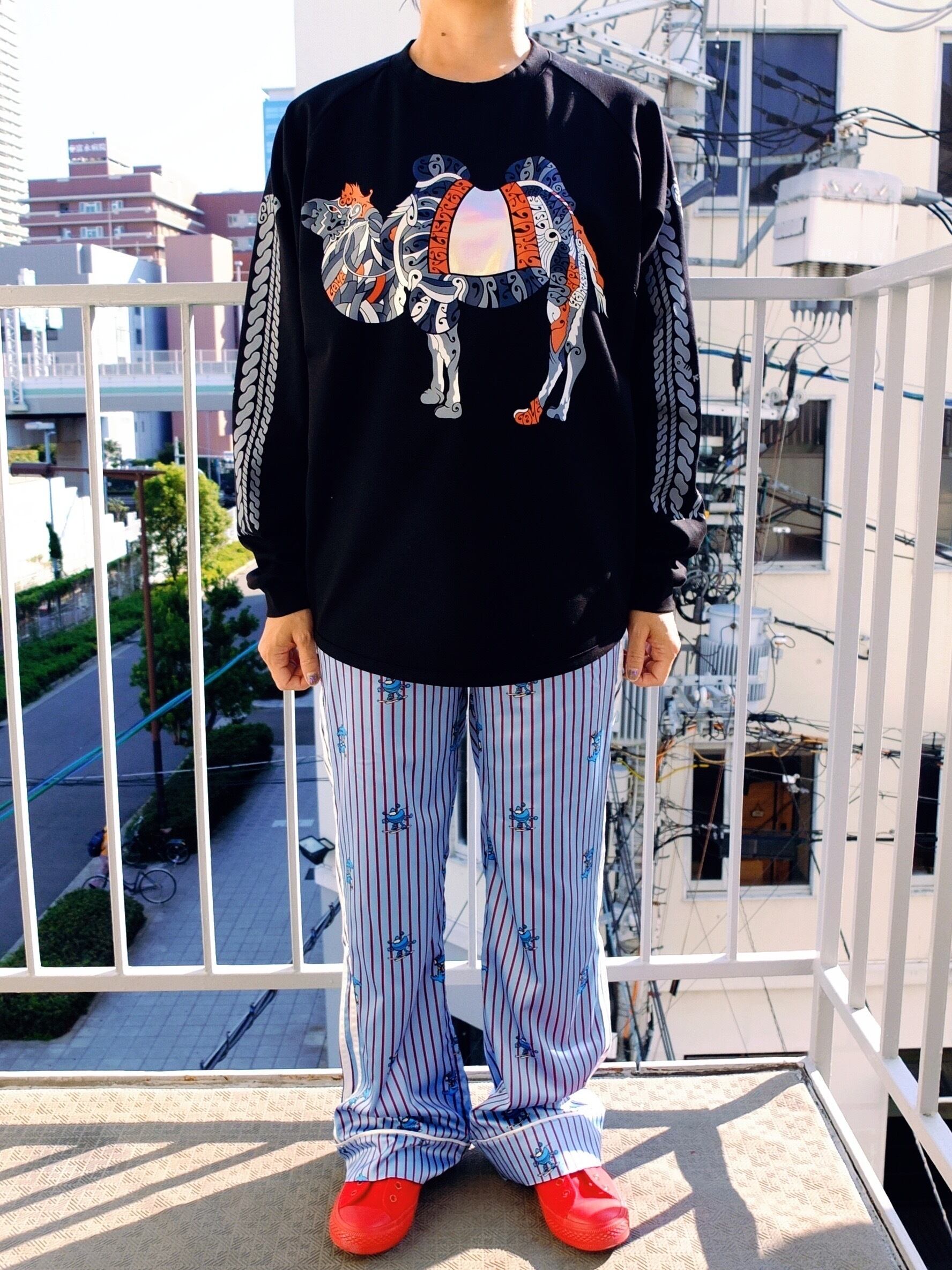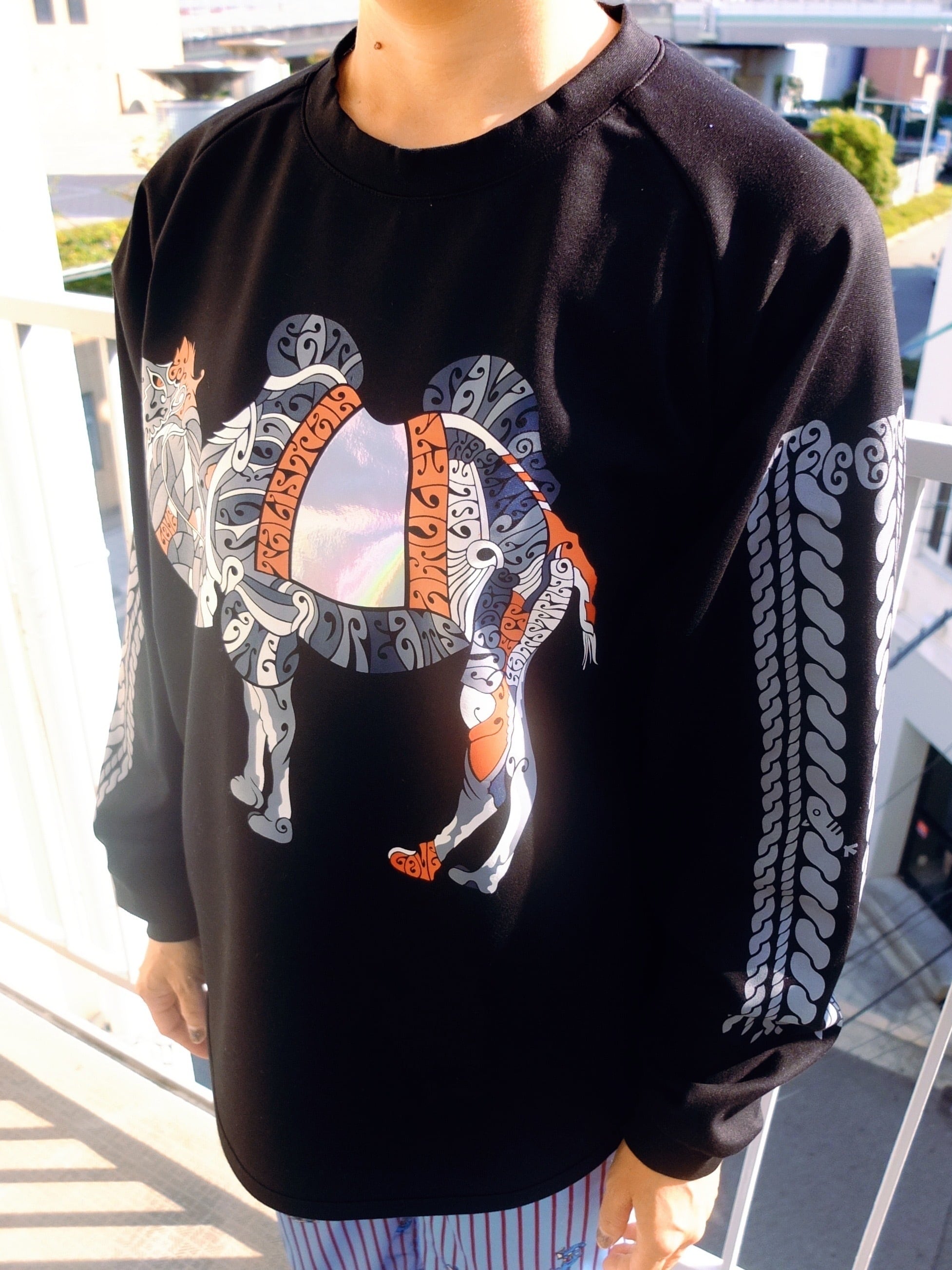 らくだ、楽か?楽じゃね~の長袖Tシャツ C/#ブラックやさしさプラス