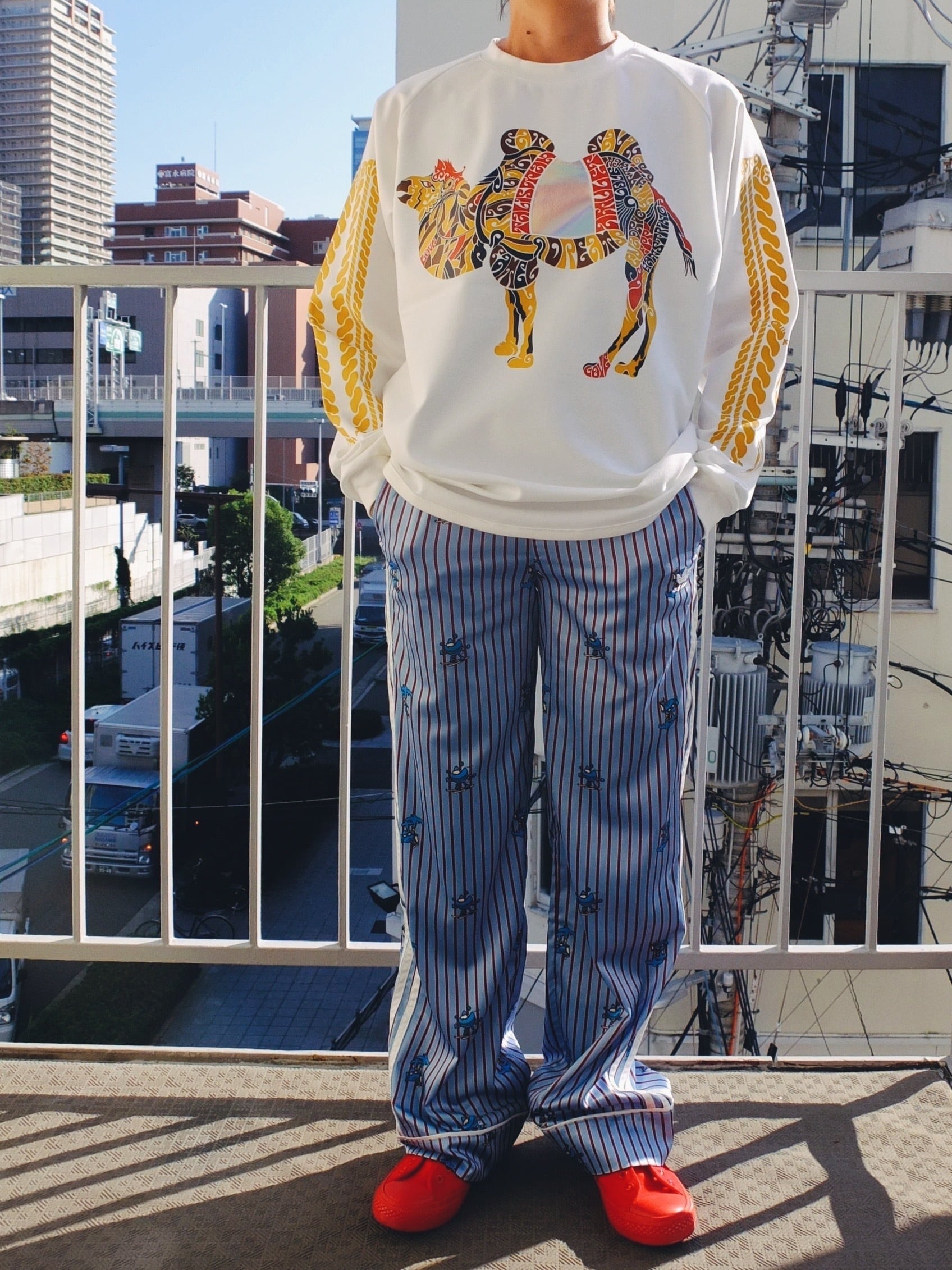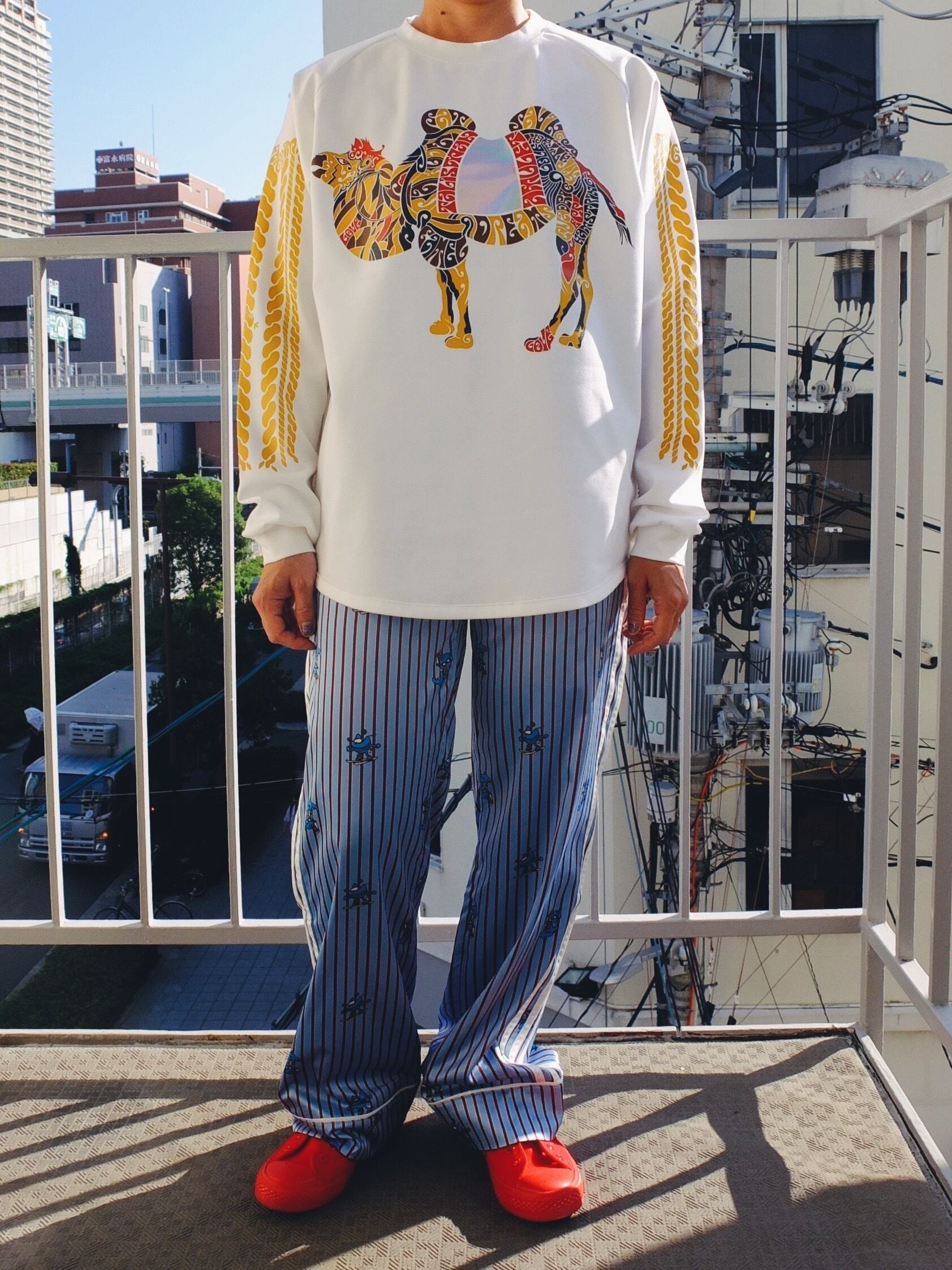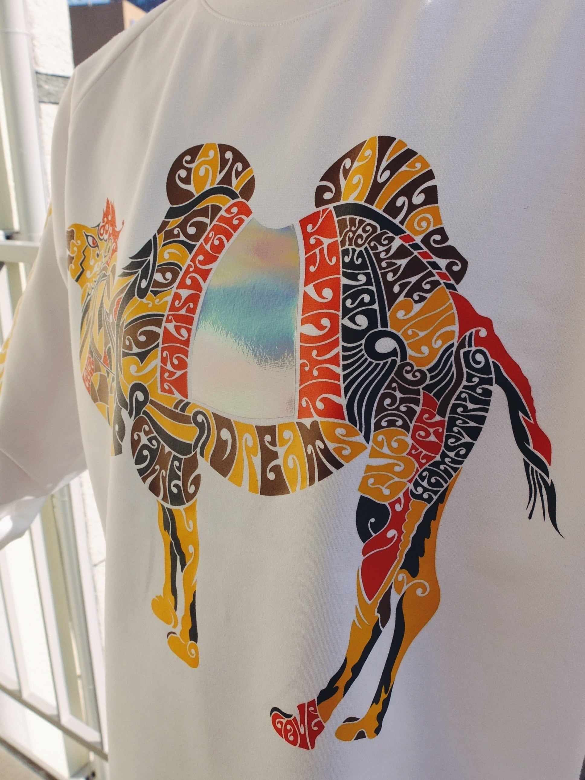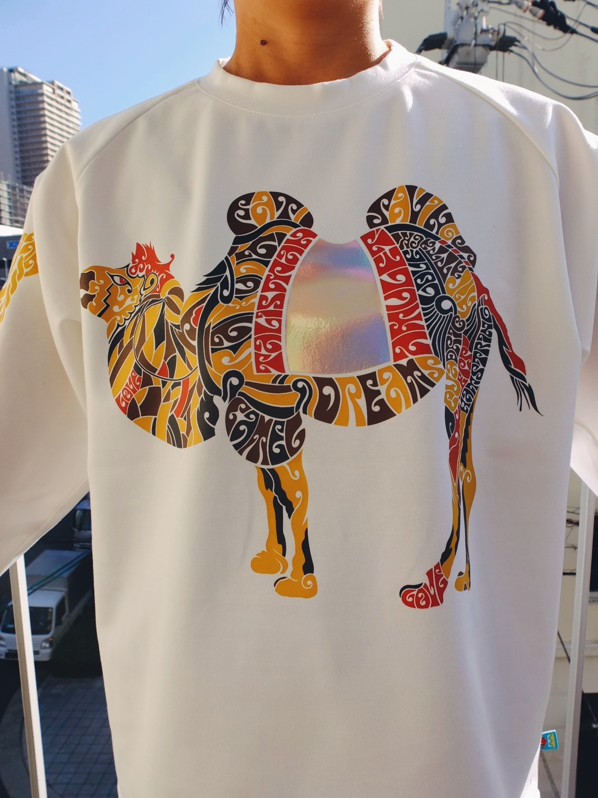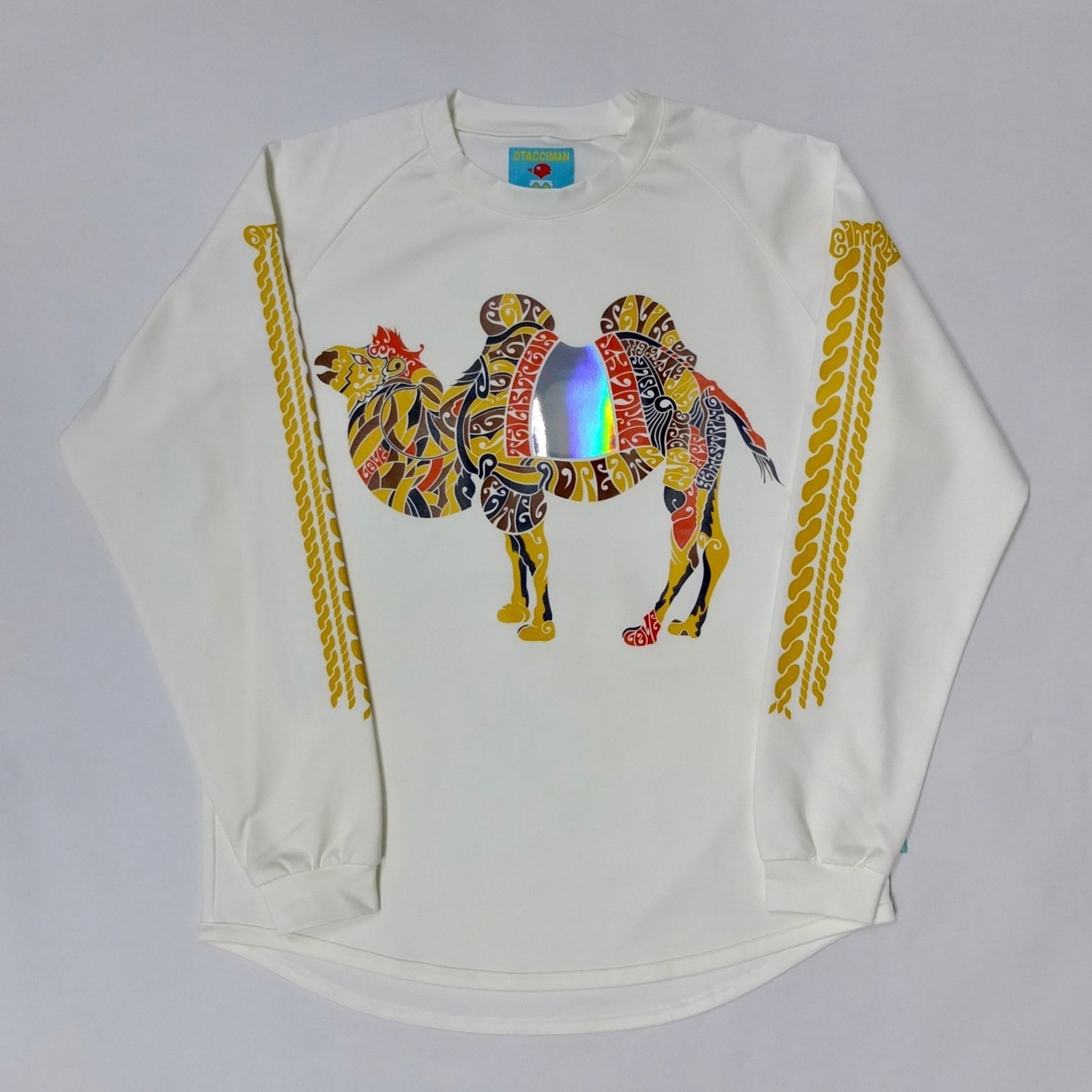 らくだ、楽か?楽じゃね~の長袖Tシャツ C/#ホワイトほほ笑み添えて
