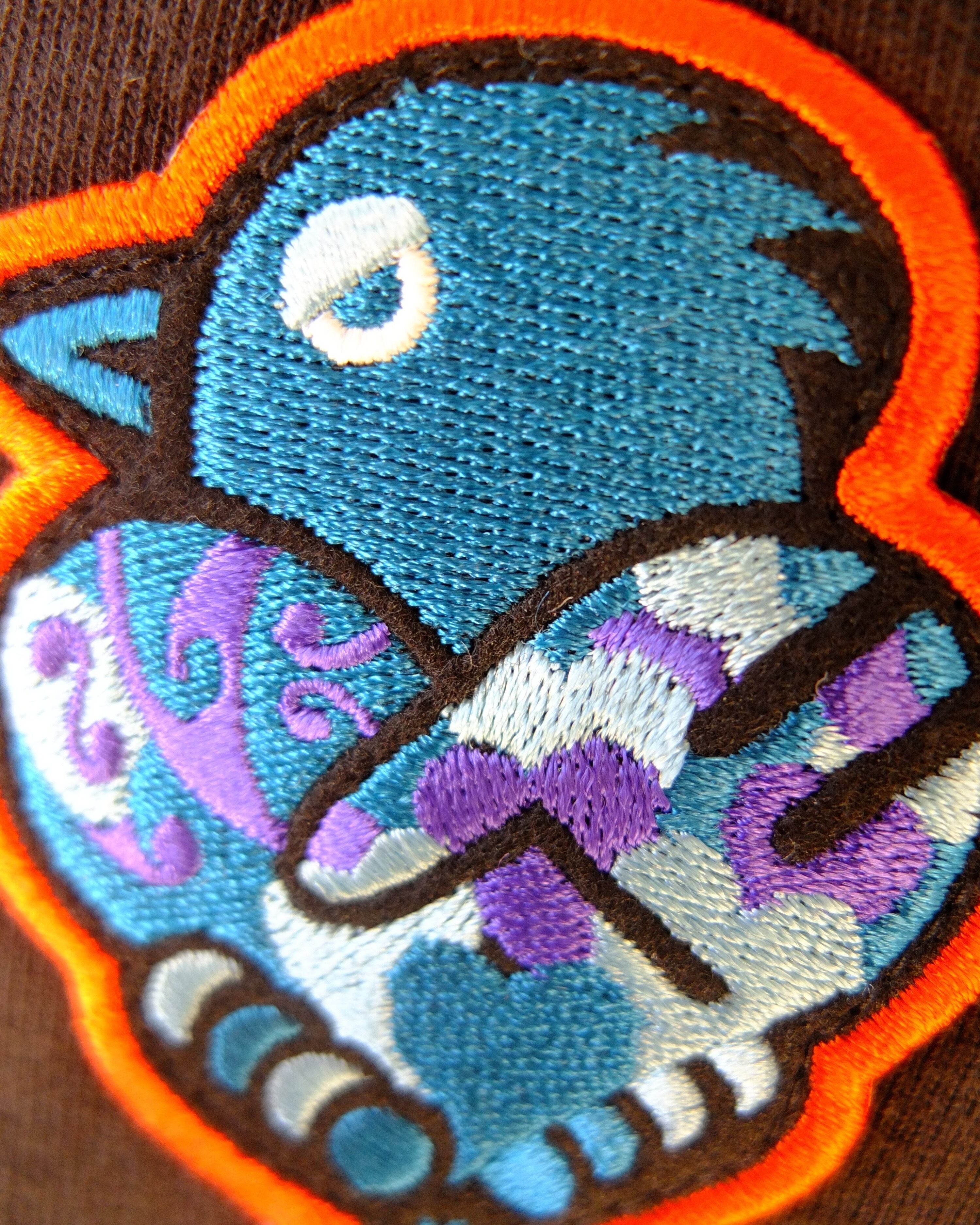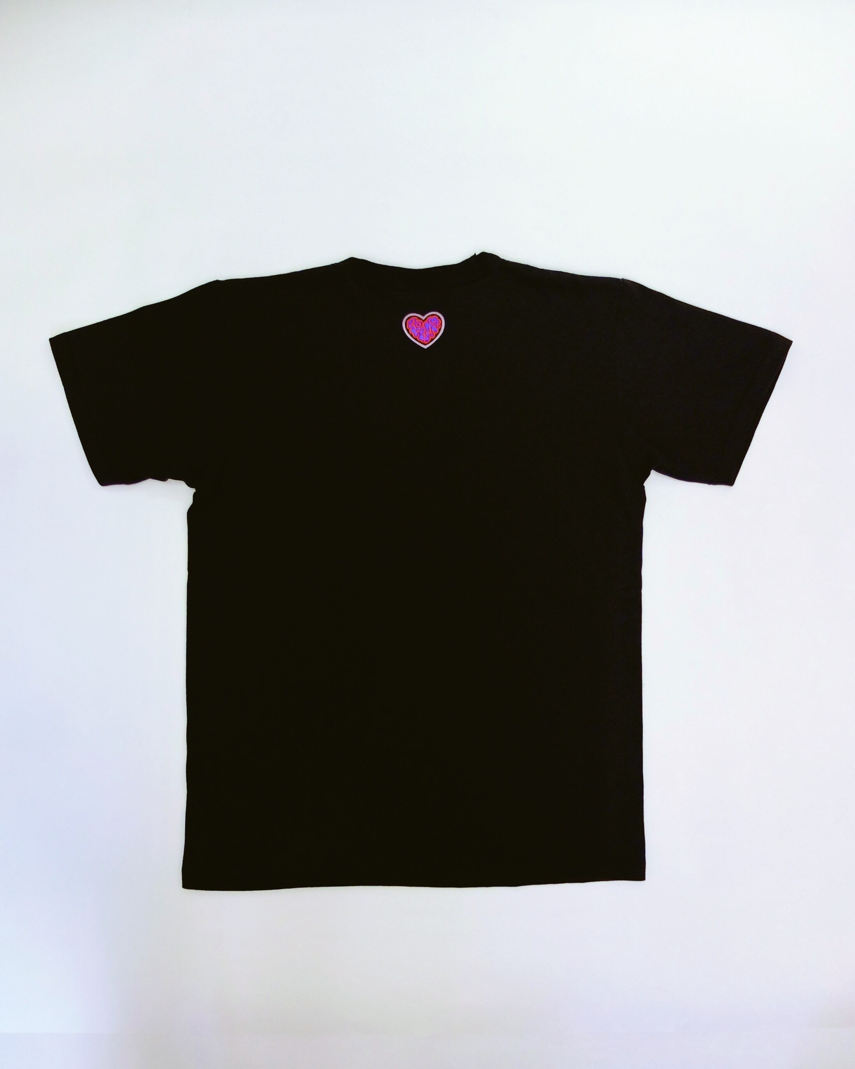 ハトハートと愛脳のワッペンTシャツ C/#里帰黒